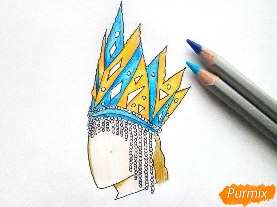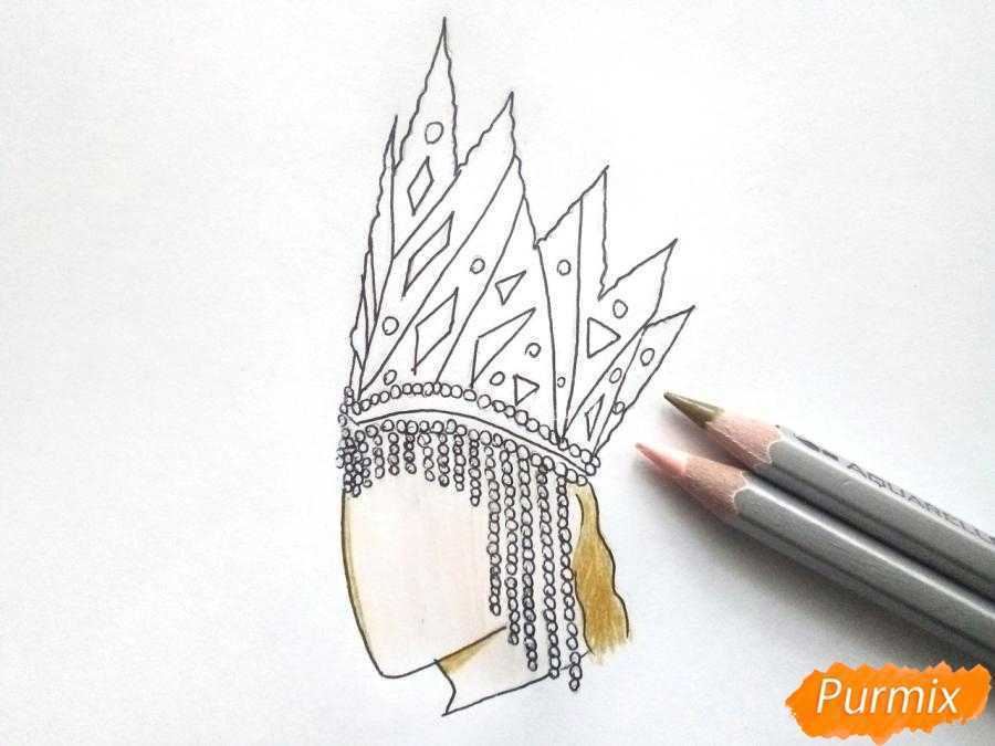 Теперь мы понимаем, как рисовать корону Снежной королевы карандашами.