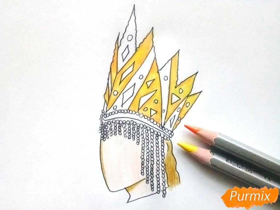 Корону поделим на фрагменты с помощью цвета. Сейчас мы прорисуем желтым и оранжевым цветом.