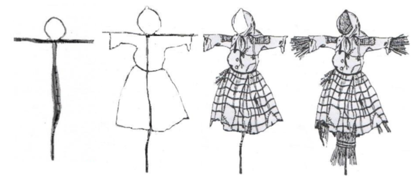 - Разрисовать одежки. «Завязать» платок на голову чучелу.
