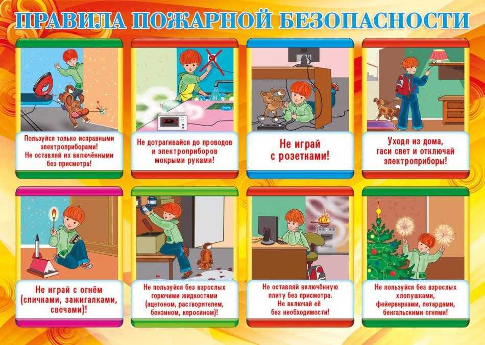 Плакат об общих правилах для детей по пожарной безопасности в доме