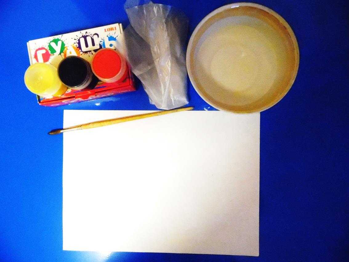 - Краски гуашь желтого, красного и черного цвета;