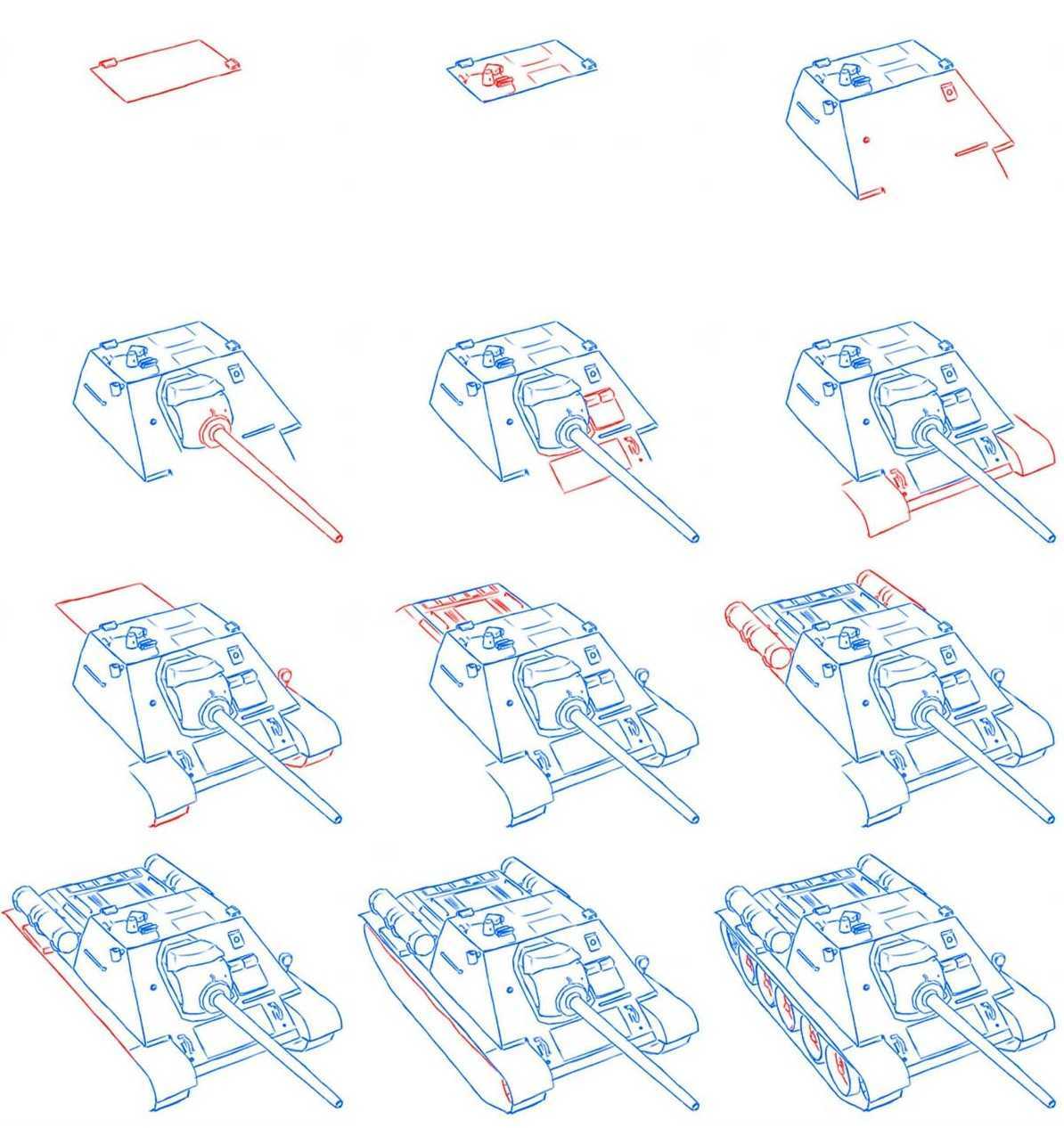 Как нарисовать танк для начинающих — мастер –класс карандашом поэтапно для детей