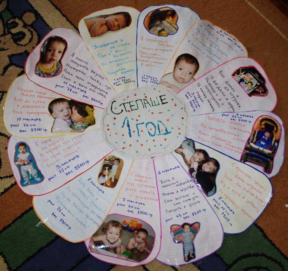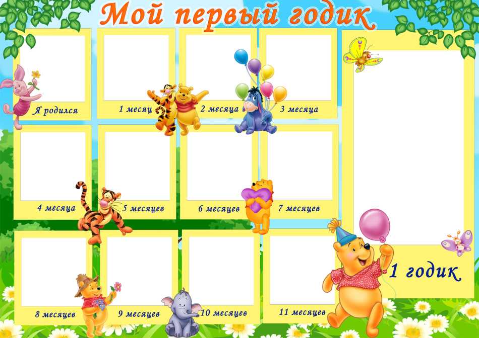 . Чаще всего такой плакат имеет 12 фото, где ребенок запечатлен каждый месяц. По таким фото гости смогут проследить рост и развитие ребенка и это важная часть празднования 1 годика!
