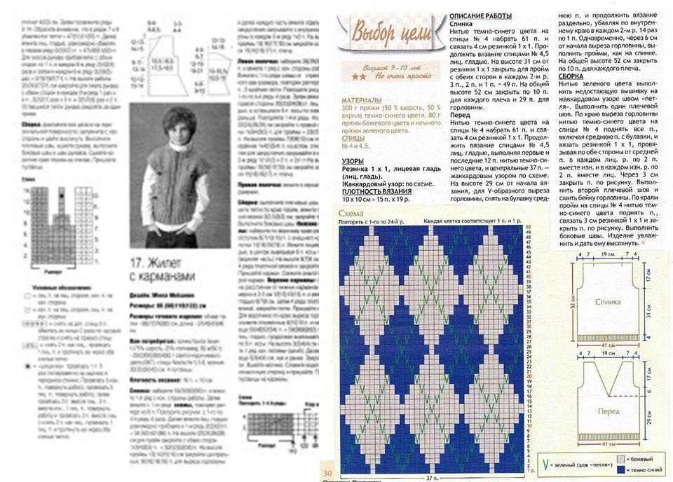 вязаный спицами жилет мальчику для школы — описание и схема работы