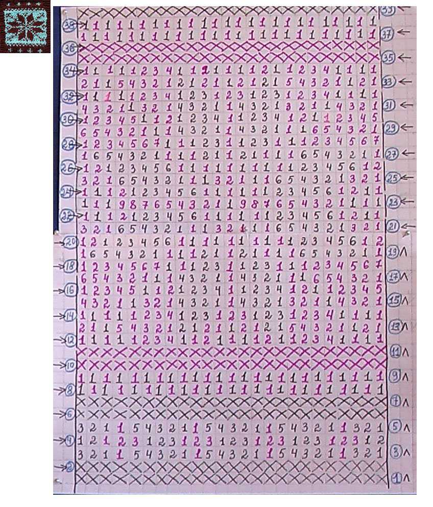 Вот схема нашего узора. Одна клеточка – одна петелька. По горизонтали – горизонтальные ряды, по вертикали – вертикальные.