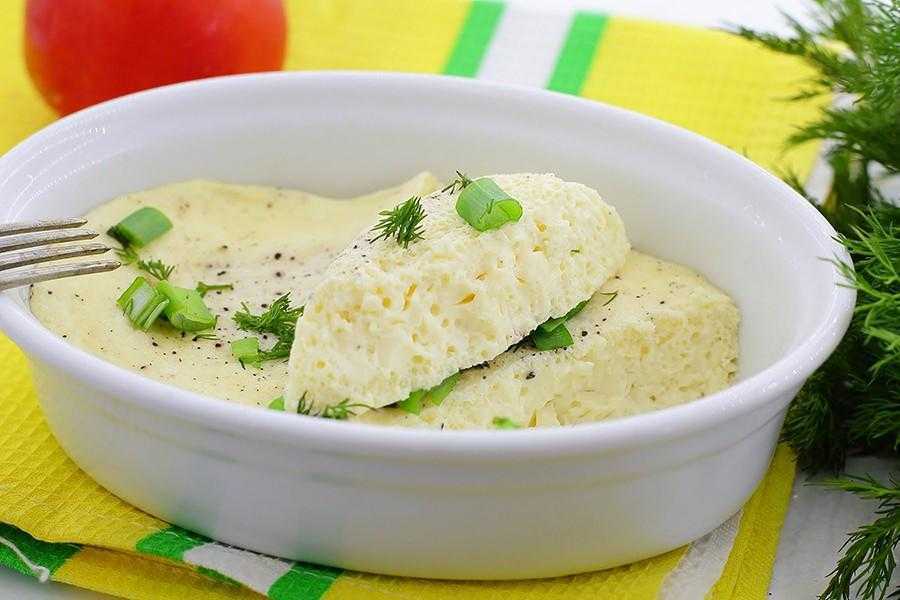 Омлет допускается готовить на пару или в микроволновке. Удобно делать блюдо в пароварке или мультиварке. Продукт в чаше этих приборов не пригорает.