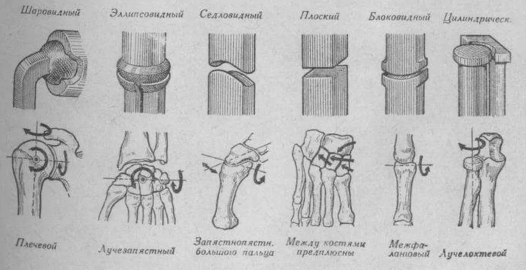 Важно также отметить, что капсула блоковидного соединения свободна только спереди и сзади, по бокам же она укреплена связками. Такие суставы работают всегда по фронтальной оси
