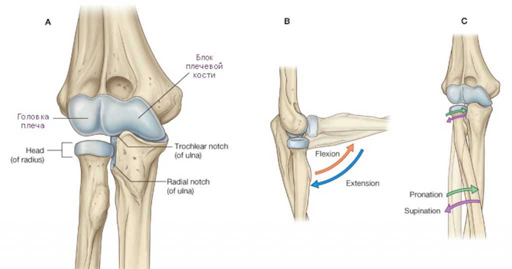 Локтевой сустав образован плечевой, лучевой и локтевой костями. Человек может сгибать и разгибать руку в локтевом суставе благодаря двум основным мышцам – двуглавой мышце плеча (бицепсу) и трёхглавой мышце плеча (трицепсу). Когда бицепс сокращается, трицепс расслабляется и наоборот. Поэтому бицепс и трицепс называют антагонистами.