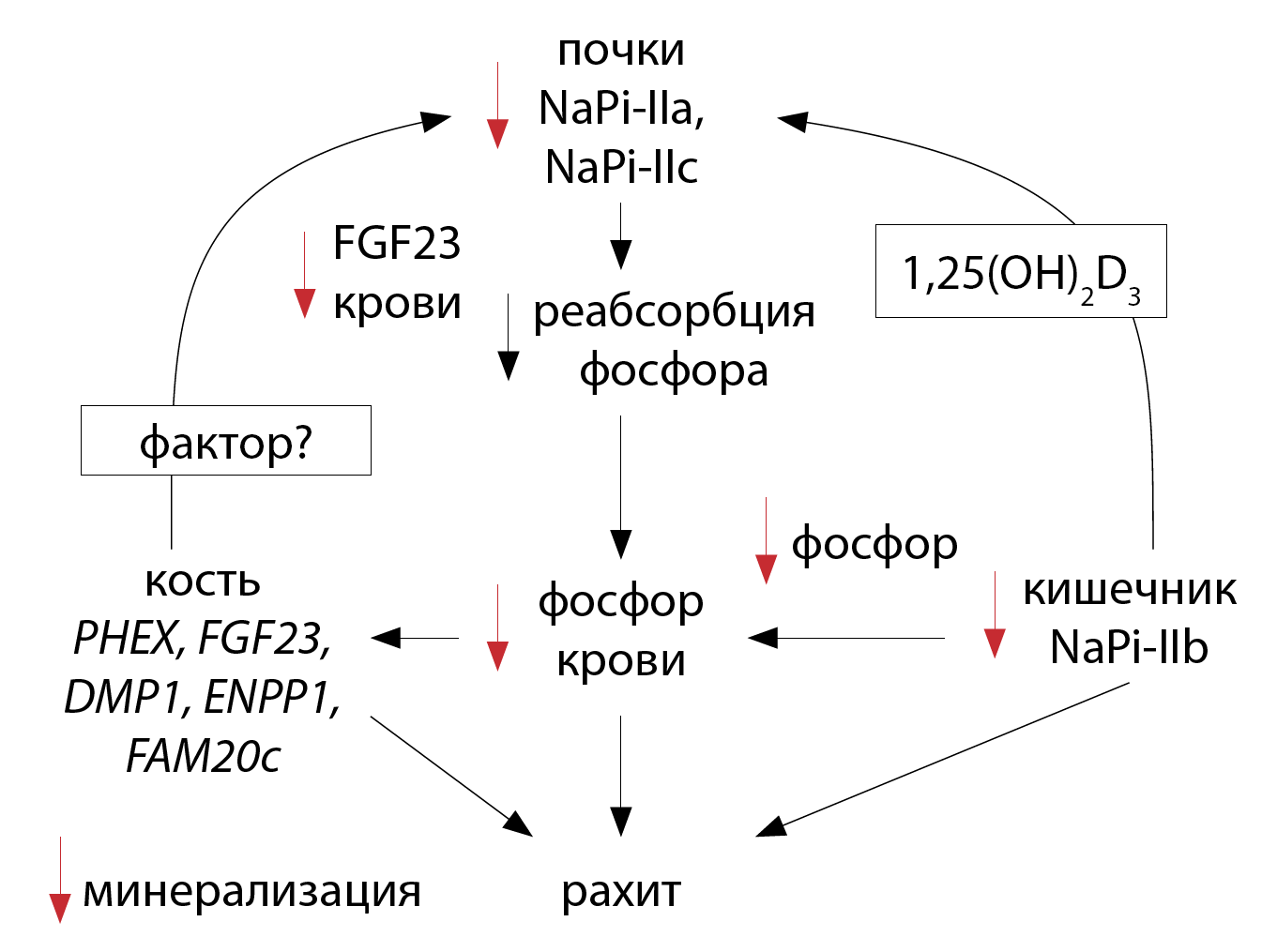 Витамин-Д-резистентный рахит (ВДРР), или гипофосфатемический рахит (ГФР), – группа заболеваний, характеризующихся развитием рахитических изменений костной ткани вследствие повышенного выведения фосфора из организма (рис. 1) .