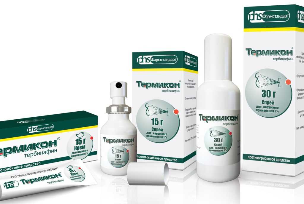 Термикон. При распылении источает резкий запах этилового спирта. Позволяет быстро угнетать процесс размножения патогенной микрофлоры и деления грибковых спор. Термикон также используется и как лекарство, и как профилактическое средство от грибка. Распыление лекарства необходимо повторять утром и вечером, ежедневно на протяжении недели. Возможно проявление аллергических реакций. В этом случае использование лекарства лучше прекратить.