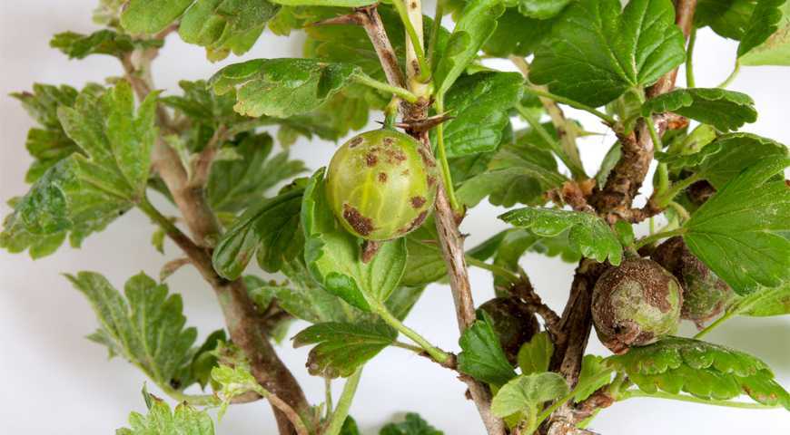 Из грибных заболеваний, наиболее неприятное, это мучнистая роса. Она поражает и смородины, и крыжовник. При этом наиболее опасной для крыжовника является американская мучнистая роса, она поражает не только молодые побеги, но и ветви и ягоды. Эффективным средством борьбы с мучнистой росой является бордосская смесь и биологический препарат «Фитоспорин». Последнее средство можно использовать даже в период созревания и сбора ягод.