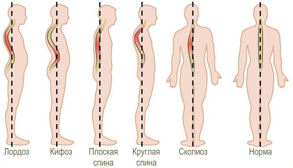 - кифозе, сколиозе, других искривлениях позвоночного столба;
