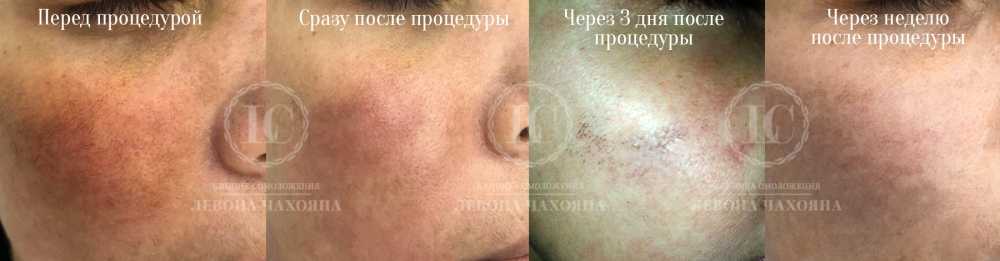 лазерного удаления телеангиоэктазий происходит по традиционному алгоритму: