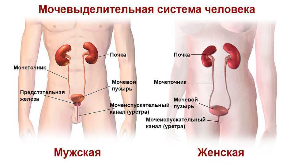 Рисунок 1. Мужская и женская мочевыделительные системы. Изображения: BruceBlaus / Wikipedia (CC BY-SA 4.0)