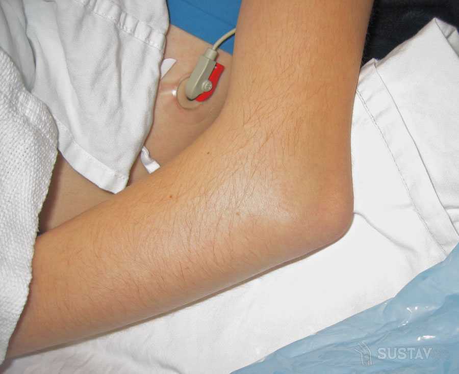 - Ограниченная либо полная неподвижность поврежденной руки.