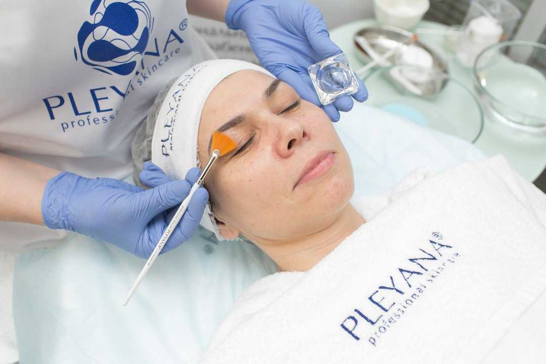 Сначала проводится тест на чувствительность. Затем врач-косметолог обезжиривает верхний слой эпидермиса и наносит состав с кислотами. Как правило, действие кислот будет ощущаться как легкое жжение на лице. Затем, когда состав подсохнет, специалист наносит маску, чтобы успокоить кожу.