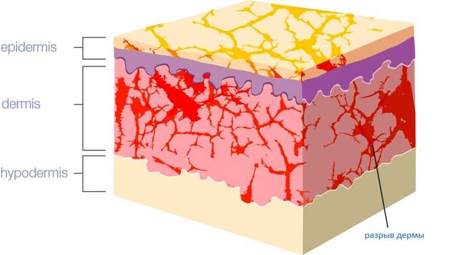 - Разрывы в глубоких слоях кожи чаще всего связаны
